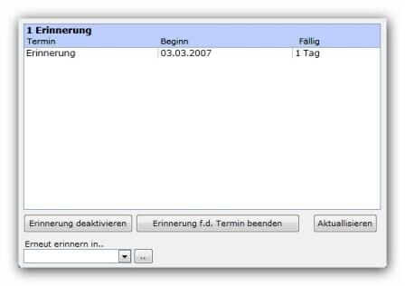 Weiterhin werden alle Termine der nächsten (einstellbaren) Tage angezeigt,