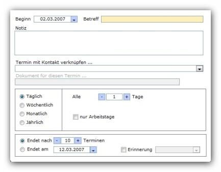 Beim erstellen eines Termins aus dem Adressformular,