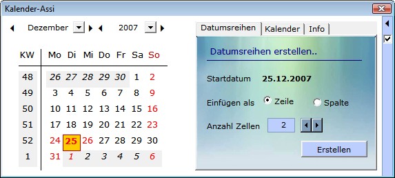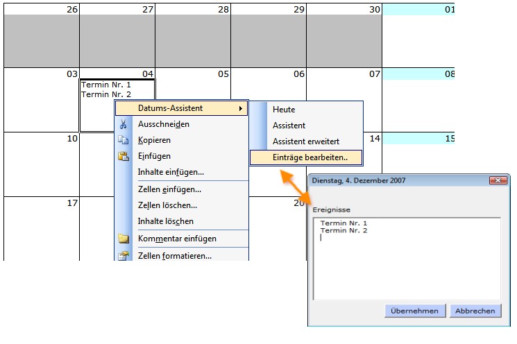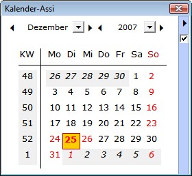 - Er bietet die Möglichkeit, in beliebigen Zellen per Popup-Kalender Datumswerte zu übernehmen.