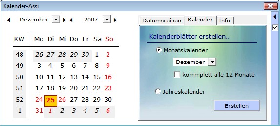 - Monats- und Jahreskalender erstellen